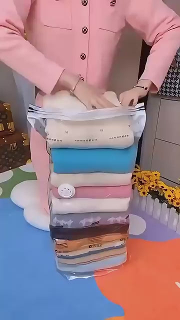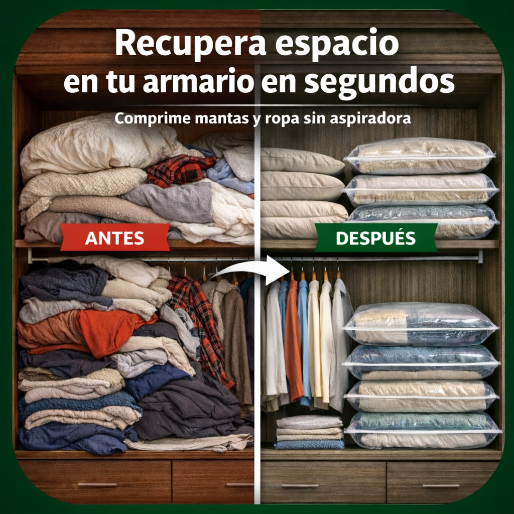 Convierte cualquier cosa voluminosa en un paquete compacto en segundos. Viaja más ligero, organiza mejor tu casa y almacena el doble sin esfuerzo.